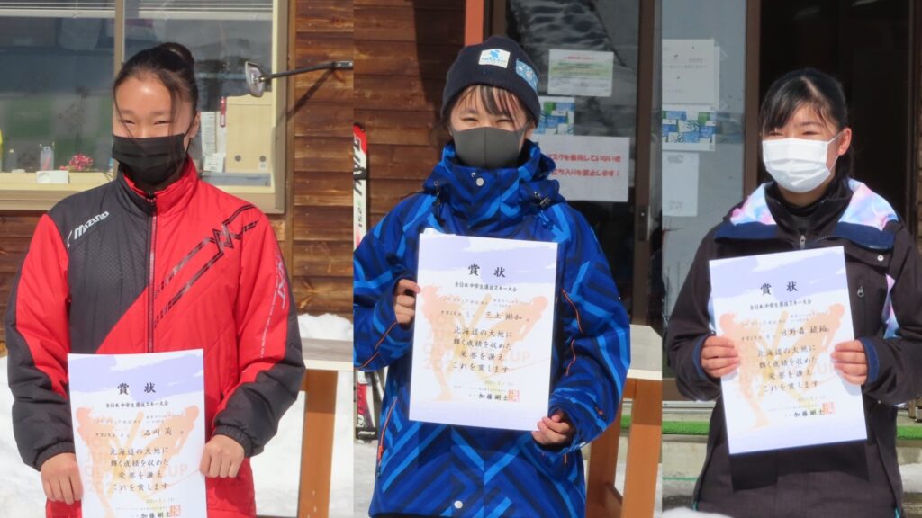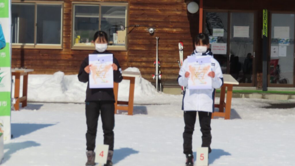 この試合は「全日本中学生選抜スキー大会」も兼ねているため、中学生の各学年毎男女毎の表彰も行われました。