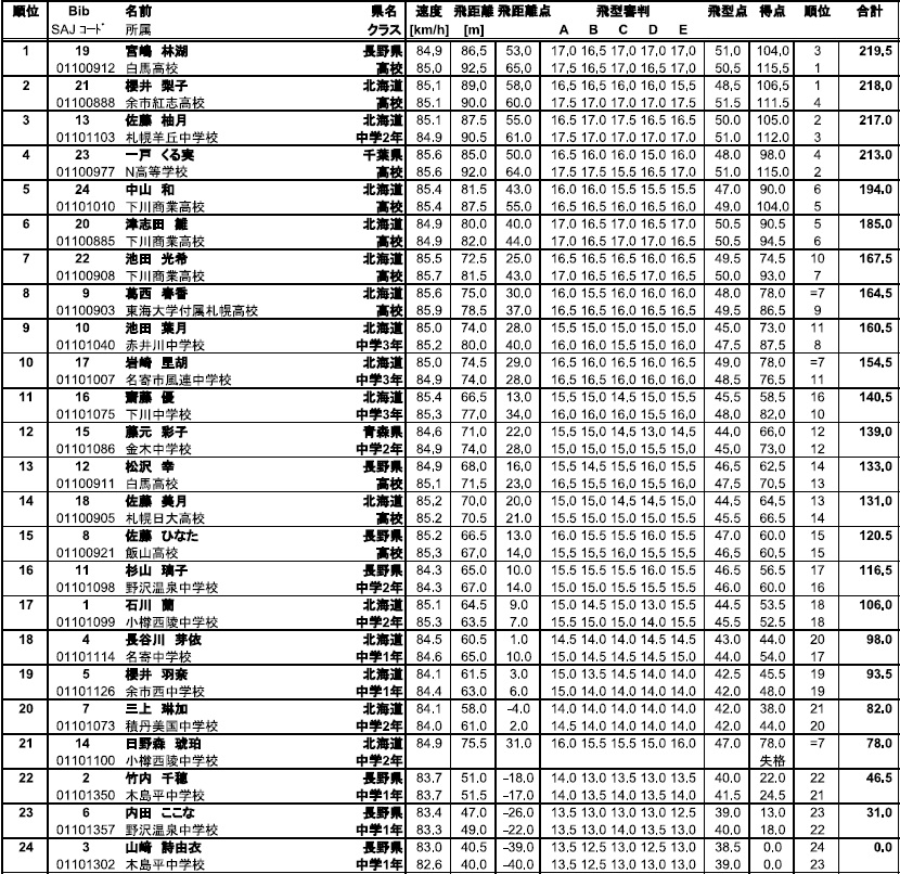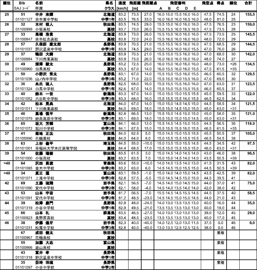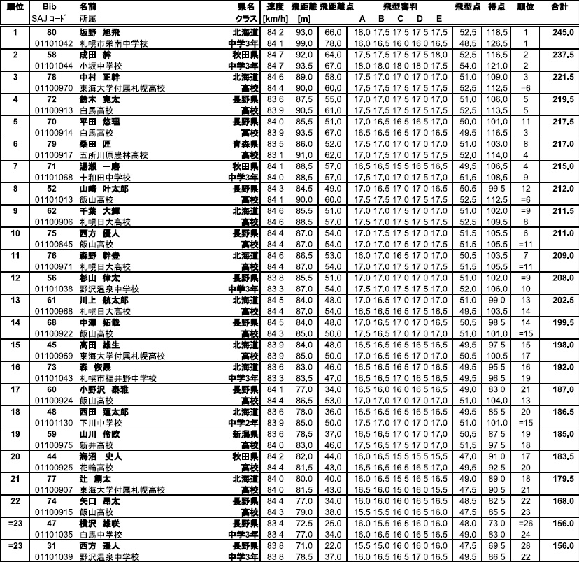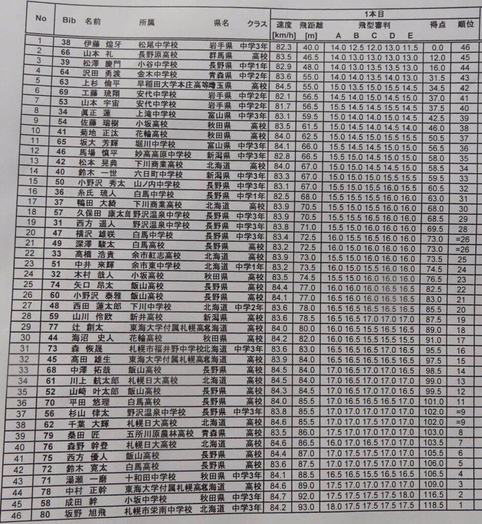 翌日のコンバインドでの好成績も期待出来る素晴らしいジャンプでしたし、次シーズン以降、高校生になられてからのこの2人の対決もまた楽しみになった試合でしたね。