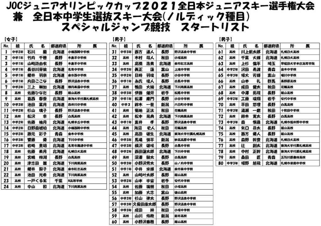 先週の札幌五輪記念で3位(高校生以下トップ)に入った #佐藤柚月 選手(札幌羊丘中2年)も絡み、