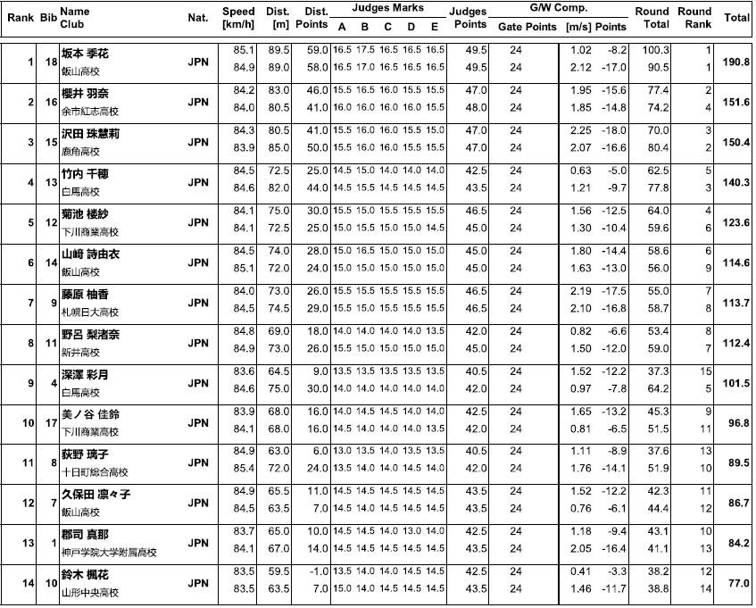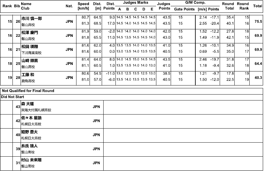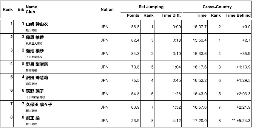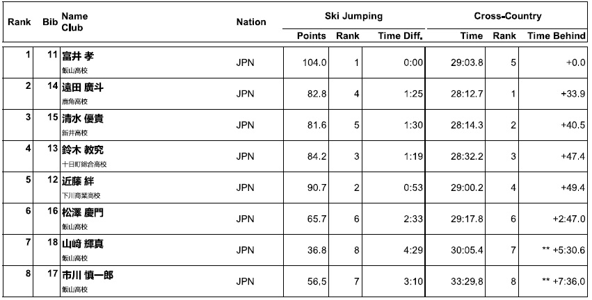 なお、この翌日には、高校選抜のコンバインド競技も行われましたが、私は現地観戦出来ませんでしたので、結果だけ掲載させて頂きます。