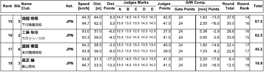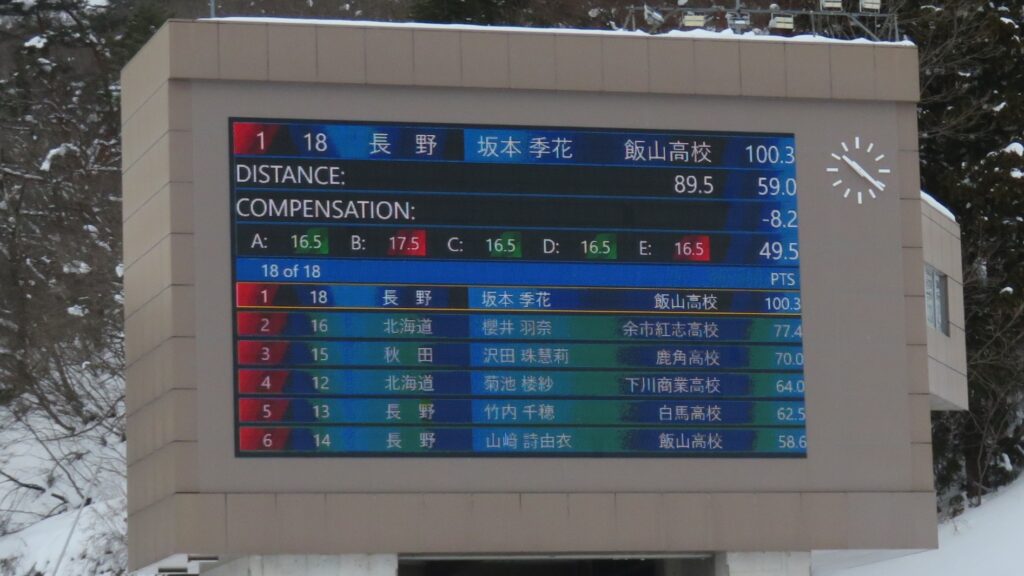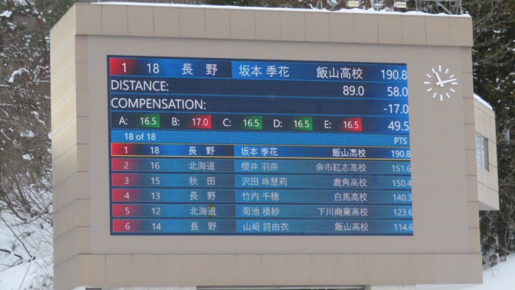 80.5メーター。ウィンドファクターの減点差により、ハナ選手が暫定1位にランク。
