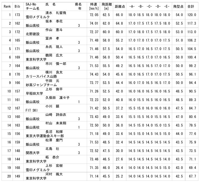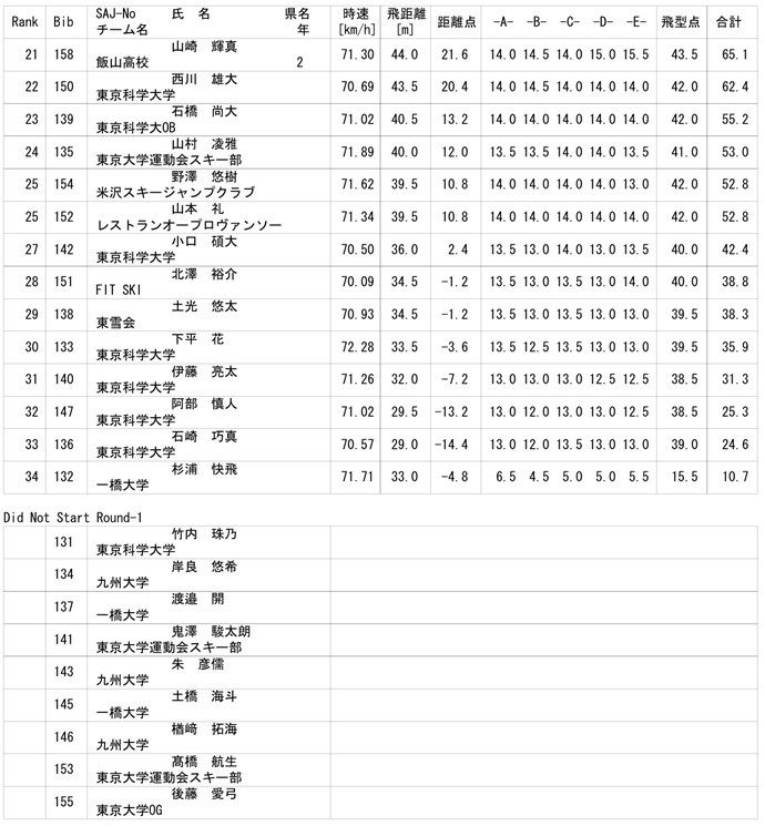 その後に飛ばれた10選手は、いずれも二人を越えられず、