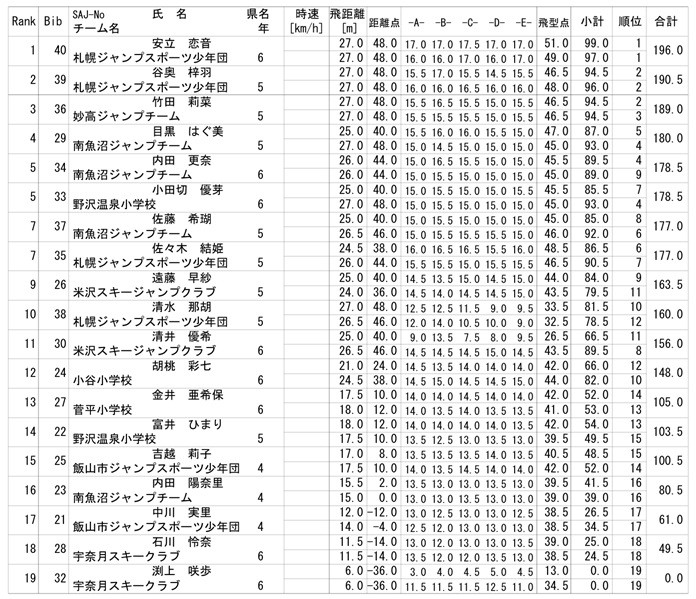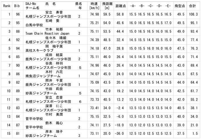 4位と5位は、昨年に小学生高学年女子上位としてミディアムヒルにも参戦されたハルヒ選手とユズハ選手で、