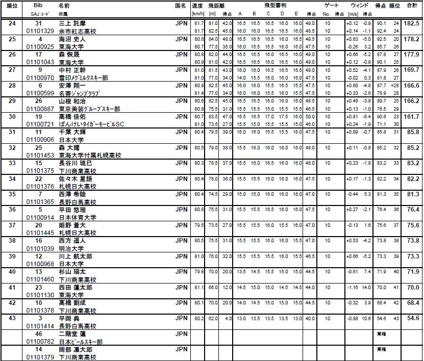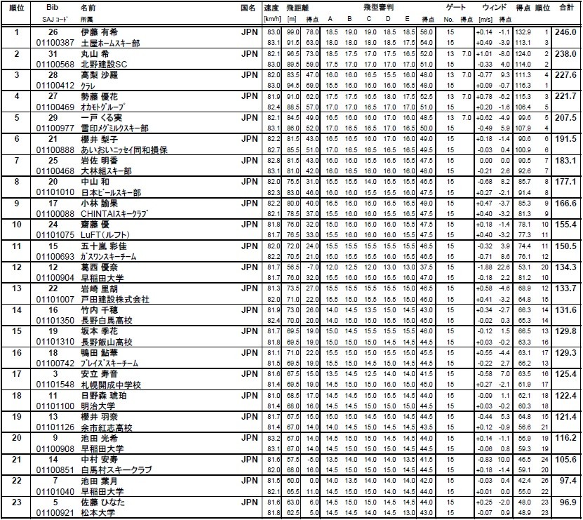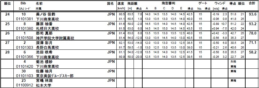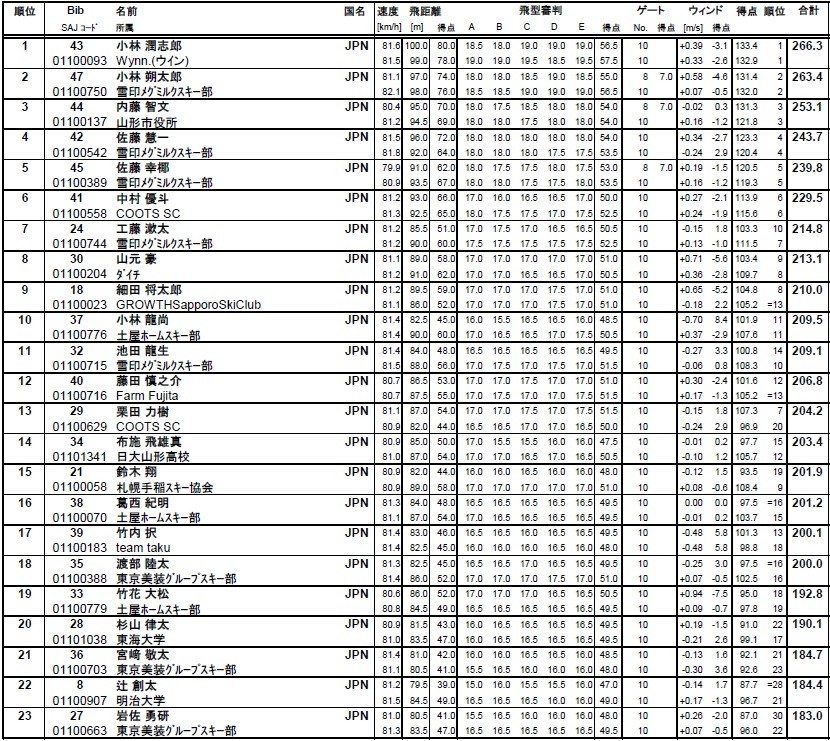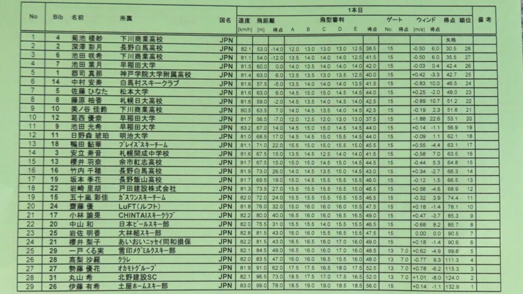 男女とも、ゲートを下げる要因を作った選手がトップに立ち、その後に飛ばれた選手達が低いゲートから距離を延ばせないという展開となりました。