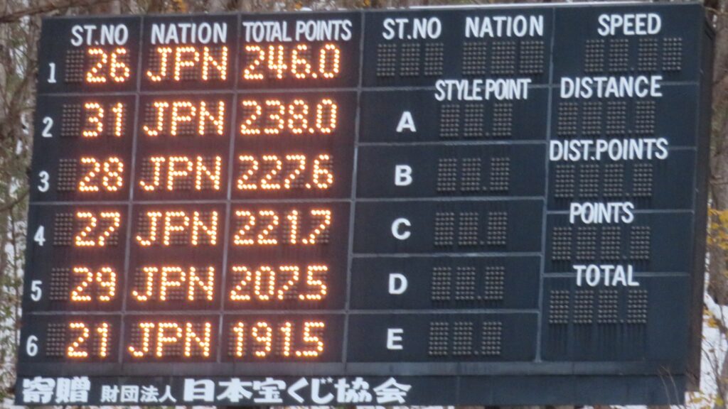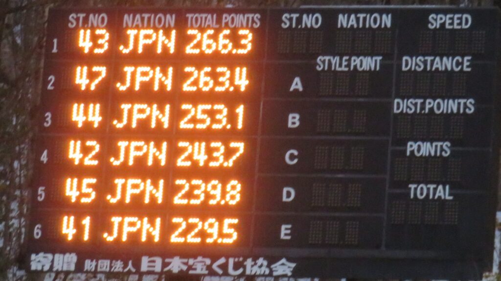 ジュンシロウ選手がトップのまま全員の1本目が終わり、