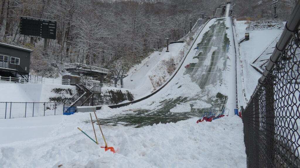 ラージヒルとは別な週に開催されたことで、予選も休日に観させて頂けることになったと思えば、良かったとも言えますが、あいにく前夜から札幌地方に10cmを超える積雪が有り、ジャンプ台は、この状態。