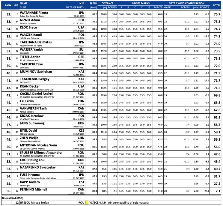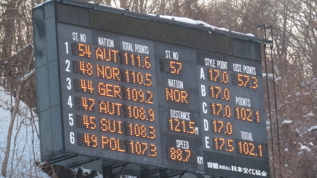 1時間以上経った15:38に、ようやく全選手が飛び終え、1本目の結果は