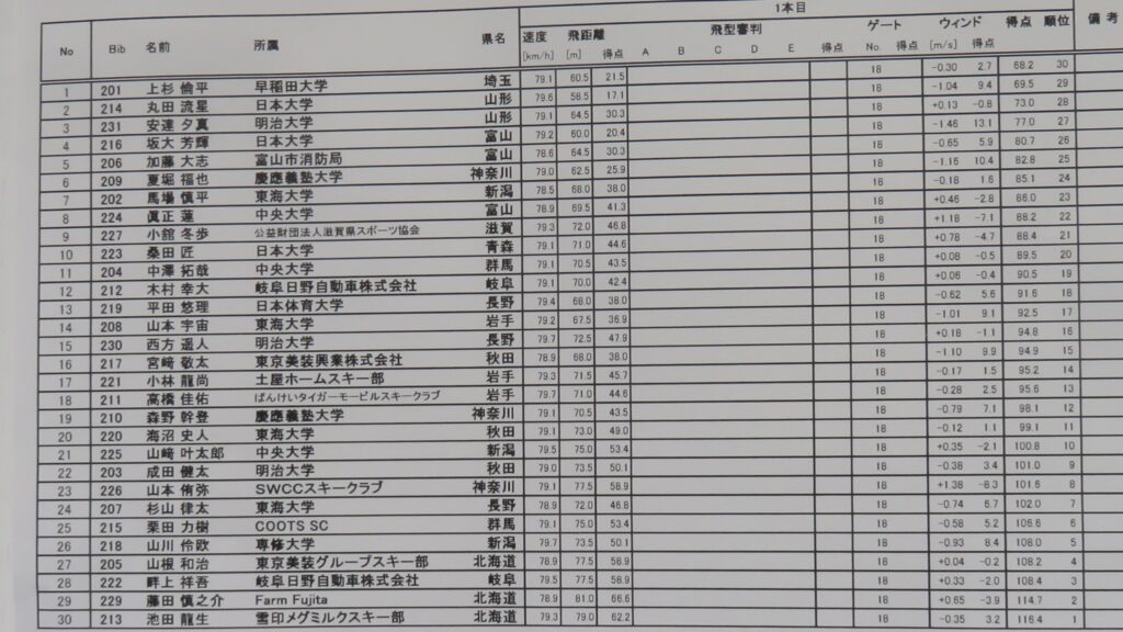 全員が1本目を飛び終えた時点で、
